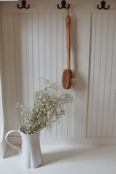 Dry brushing is a way to gently exfoliate your skin. This dry/wet brush helps to scrub off excess dry skin. Benefits of dry brushing include helping to firm up skin, getting rid of dry skin flakes and helping to increase the circulation of your blood flow, adding glow to your skin. This brush is made from bamboo and natural boar bristles.